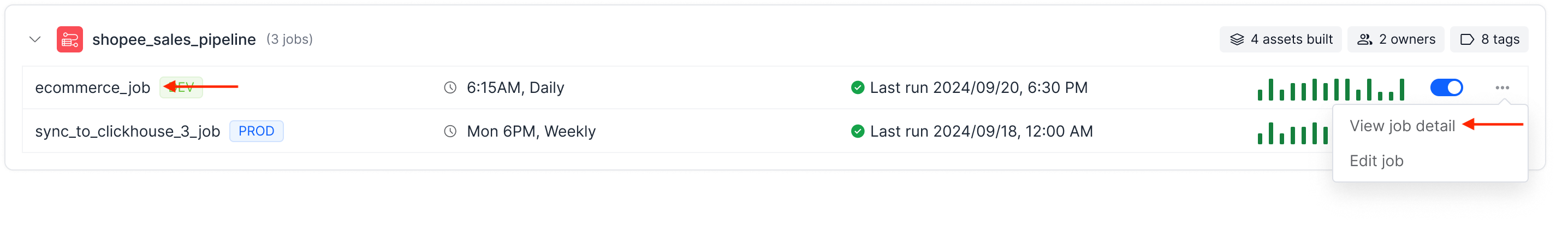 要查看任务的详细信息，点击任务项的名称，或点击操作按钮并选择 **查看任务详情/ View job details**。