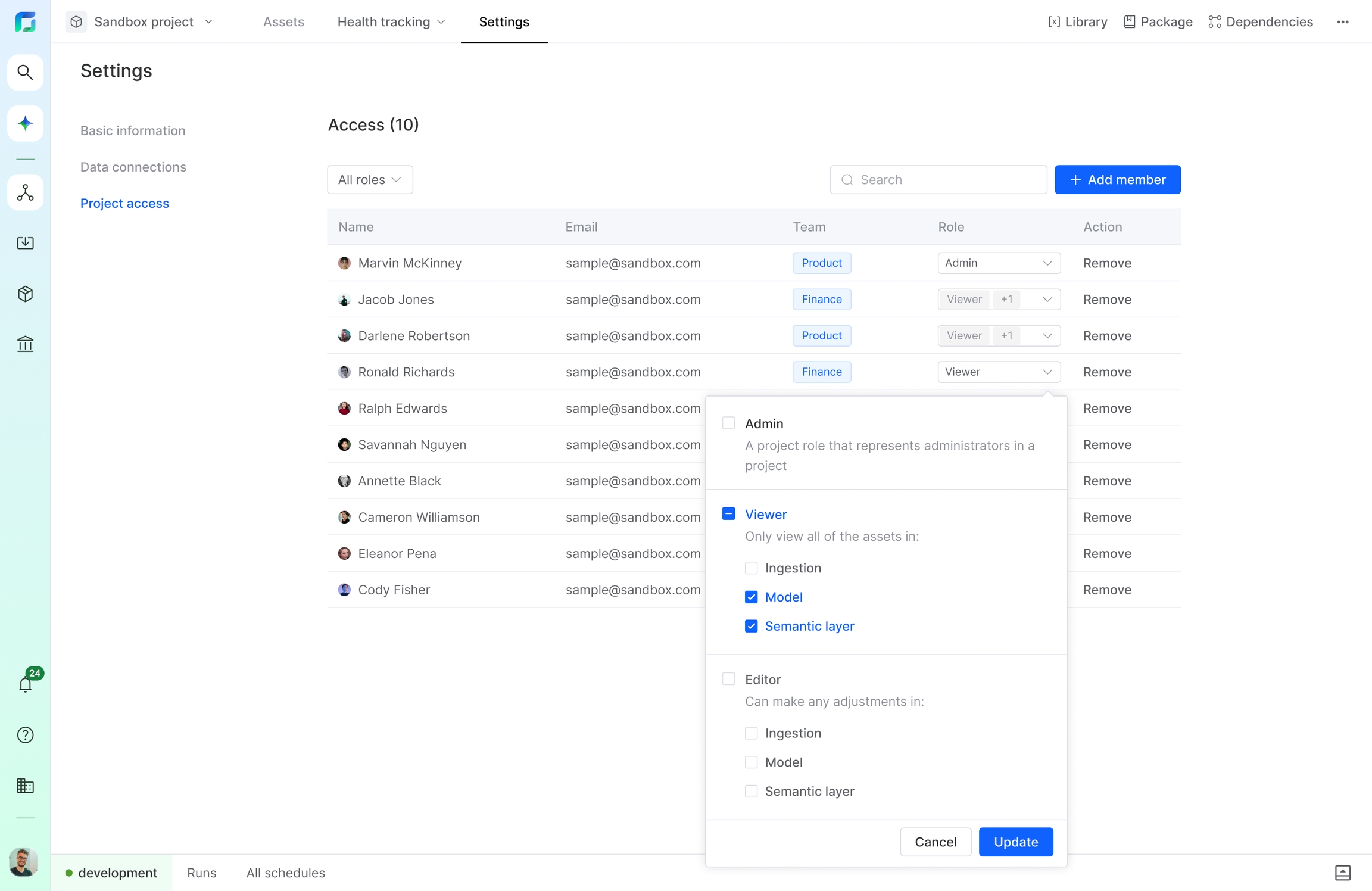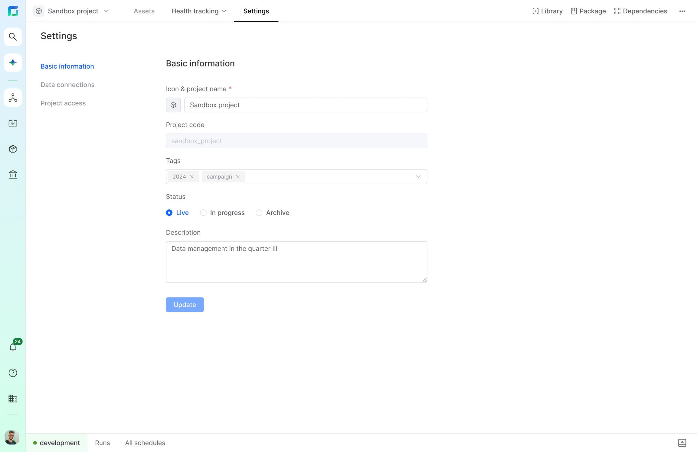 项目管理员可以对项目设置进行更改,这些更改将应用于项目中的所有成员和资产。
